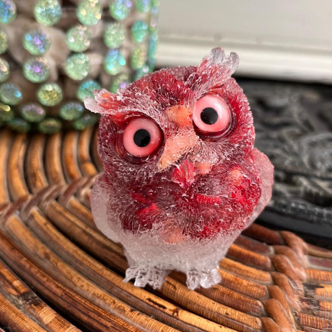 Búho Coral Rojo y Cuarzo Blanco