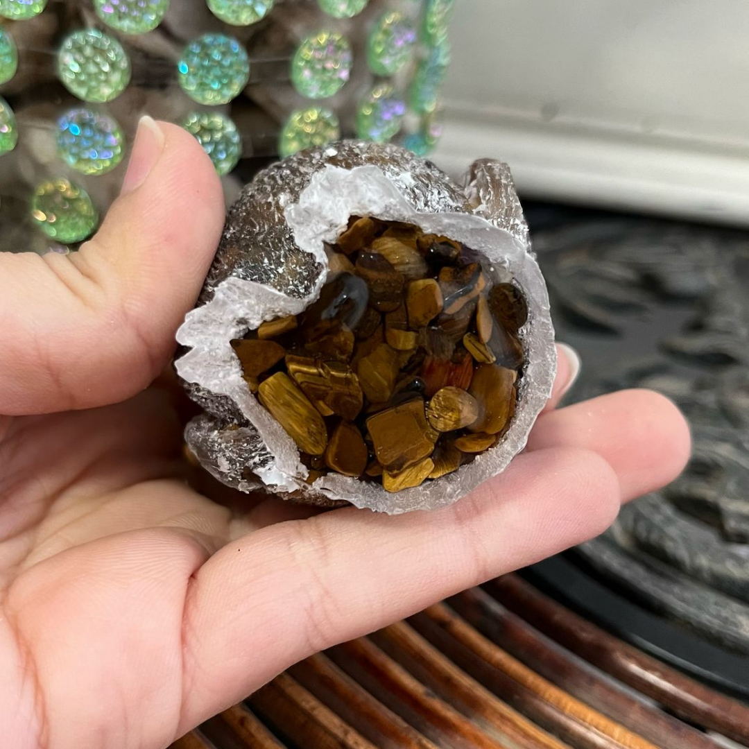 Crea un escudo energético poderoso con el Búho de la Protección. Esta guardiana figura combina la sabiduría protectora del búho con la fuerza defensiva del ojo de tigre, creando una barrera contra energías negativas. Su vibración protectora aleja la envidia, bloquea el mal de ojo y fortalece la confianza personal. Perfecto para protección del hogar, espacios de trabajo, momentos de vulnerabilidad y como guardián de seguridad y coraje.