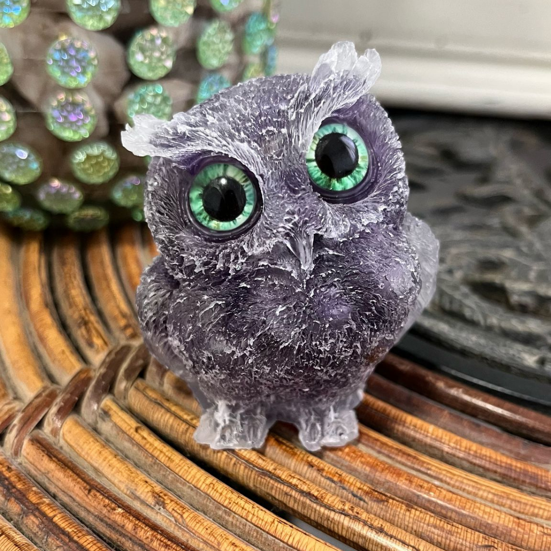Encuentra la serenidad absoluta con el Búho de la Calma. Esta pacífica figura combina la sabiduría del búho con las propiedades relajantes de la amatista, creando un refugio de tranquilidad. Su vibración calmante reduce el estrés, mejora la calidad del sueño, alivia dolores de cabeza y fortalece la intuición. Perfecto para dormitorios, espacios de meditación, momentos de ansiedad y como compañero de relajación profunda y paz mental.