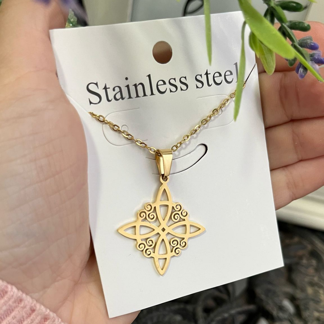 El Collar Nudo de Bruja Acero es tu escudo personal contra todo lo malo. El nudo de bruja es uno de los símbolos de protección más antiguos y poderosos que existen. Te protege de hechizos, brujerías, mal de ojo, envidias y energías negativas que otras personas puedan enviarte. También bloquea la mala suerte y atrae buena fortuna a tu vida. Es especialmente útil cuando sientes que alguien te está haciendo daño con magia, cuando tienes rachas de mala suerte o cuando trabajas con mucha gente y necesitas protección constante. El acero lo hace muy resistente para uso diario. Perfecto para cualquier persona que busque protección básica pero muy efectiva.