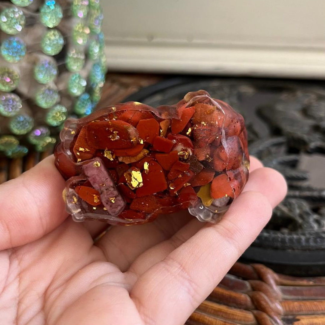 El Gato Fuerza es tu aliado para fortaleza interior y poder personal. Te ayuda a superar obstáculos, aumentar tu determinación y desarrollar coraje. Gracias al jaspe rojo fortalece tu espíritu y voluntad. Colócalo en tu oficina, área de trabajo o espacio personal. Ideal para quienes buscan fuerza, motivación y poder interior para lograr sus metas.