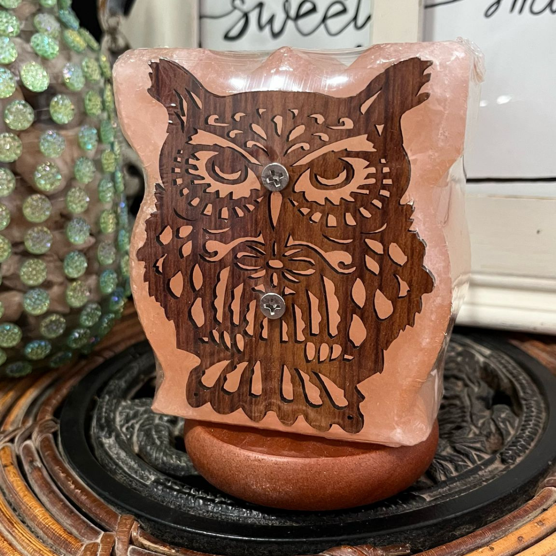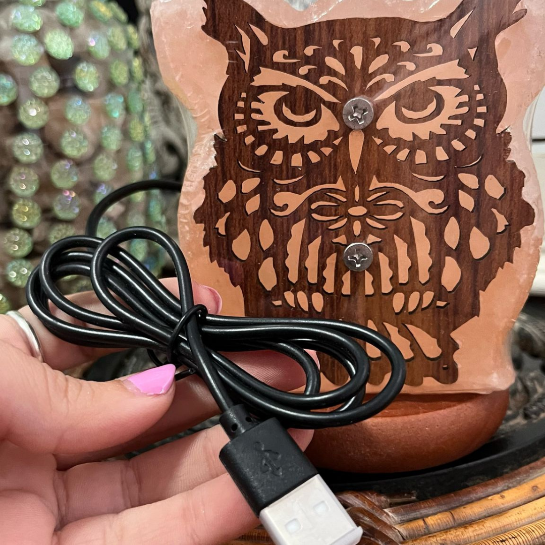 La Lámpara Sal Búho es tu aliada para purificar el aire y crear ambiente relajante. Te ayuda a ionizar el ambiente, reducir estrés y mejorar el sueño. Su diseño de búho en madera con sal del Himalaya combina sabiduría y purificación. Úsala en tu dormitorio, sala de estar, entrada de casa, oficina o espacio de relajación. Lleva luces LED que van cambiando de color.