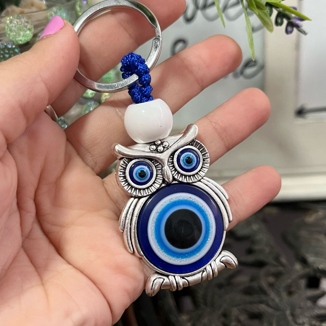 El Llavero Búho es tu aliado para sabiduría y protección contra el mal de ojo. Te ayuda a desarrollar intuición, tomar decisiones sabias y protegerte de envidias y energías negativas. Su energía de búho aporta sabiduría ancestral mientras el ojo turco bloquea miradas envidiosas y malas intenciones. Llévalo contigo para protección diaria, viajes o cuando necesites claridad mental y defensa contra el mal de ojo.