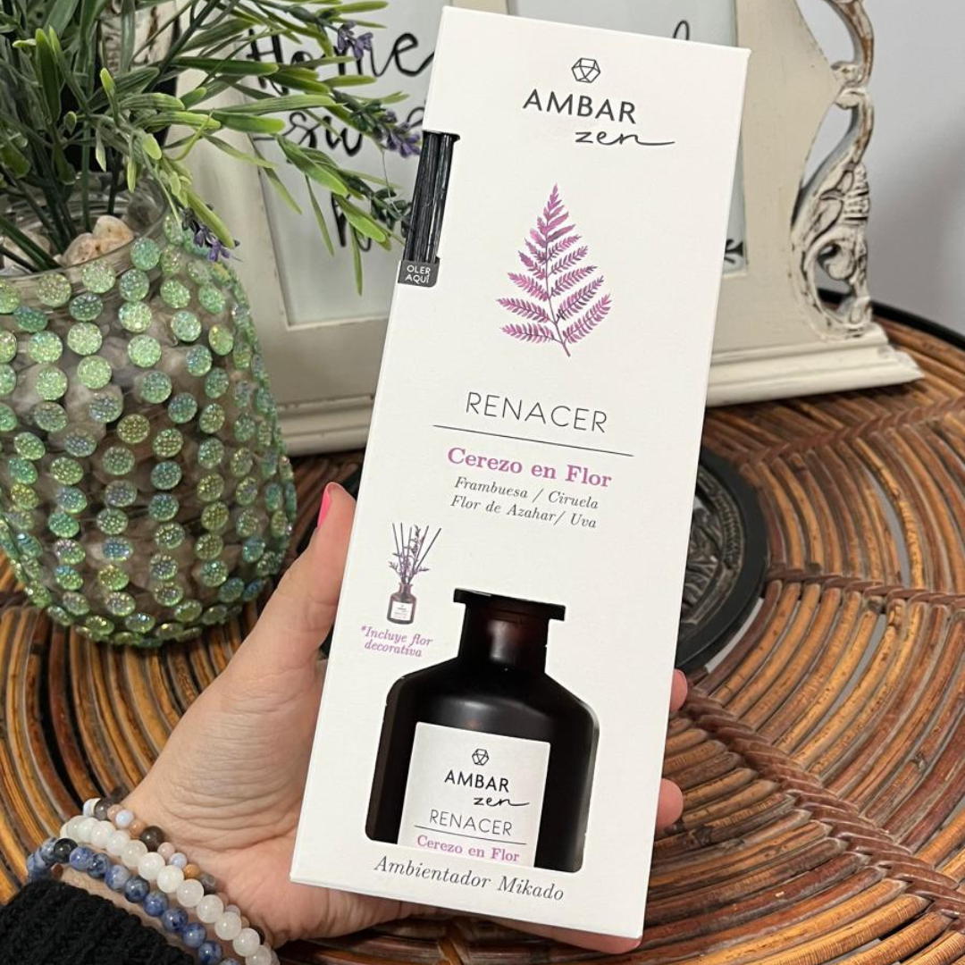 El Mikado Ambar Renacer Cerezo en Flor te ayuda a experimentar un nuevo comienzo y renovar tu energía cuando necesitas dejar el pasado atrás y empezar de nuevo. Esta delicada fragancia captura la esencia renovadora de los cerezos en flor, simbolizando renacimiento y esperanza. Su aroma floral y fresco aporta optimismo, renueva las energías y transforma cualquier espacio en un jardín de posibilidades.