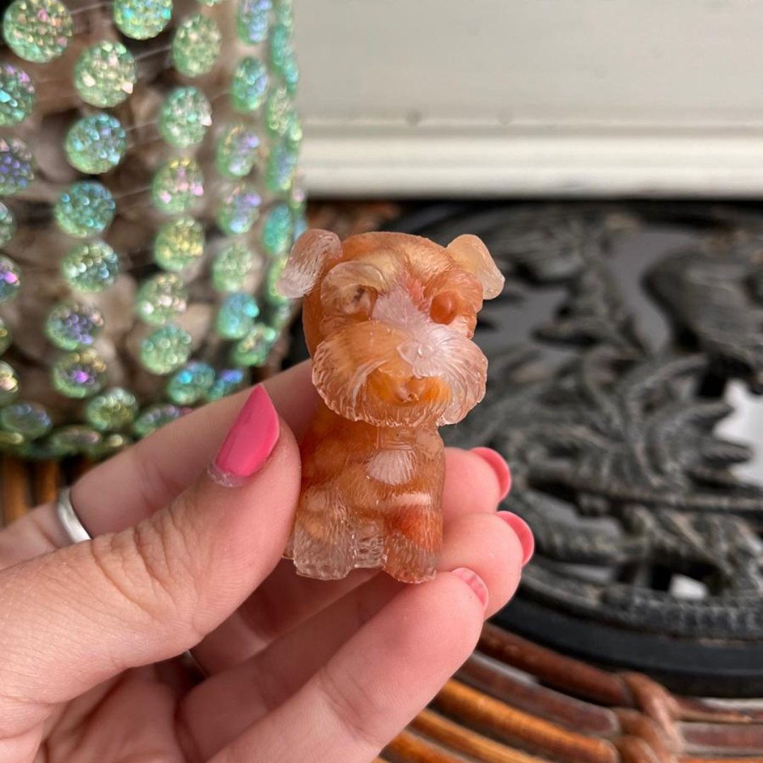 El Perro Energía es tu aliado para vitalidad y motivación. Te ayuda a aumentar tu energía, despertar entusiasmo y activar tu fuerza interior cuando necesitas impulso y dinamismo. Gracias al ágata naranja aporta creatividad, alegría y motivación. Colócalo en tu hogar, oficina, área de trabajo o espacio que necesite energía.
