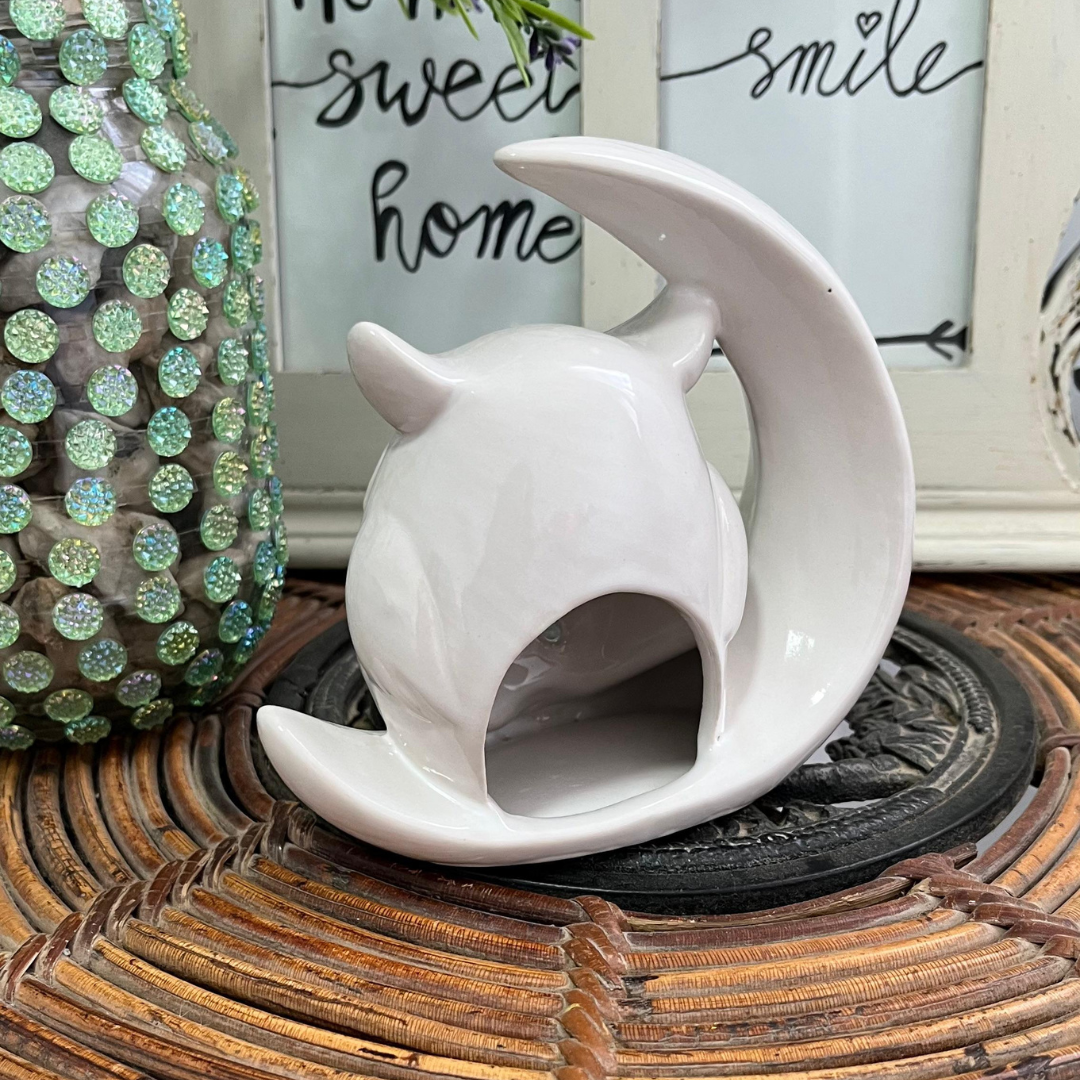 El Quemador Cerámica Búho está diseñado especialmente para velitas de té, te ayuda a iluminar espacios, crear atmósfera relajante y potenciar la concentración. El búho blanco simboliza la sabiduría pura y la claridad.