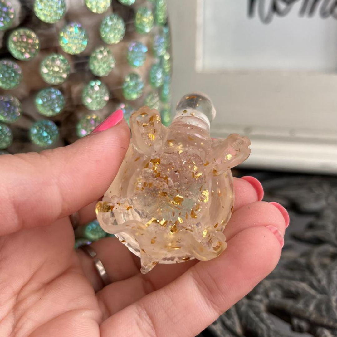 La Tortuga Abundancia es tu aliada para prosperidad y riqueza. Te ayuda a atraer dinero, multiplicar ingresos y abrir caminos económicos, cuando necesitas estabilidad financiera y crecimiento económico. Gracias al cuarzo transparente y dorado amplifica la manifestación y atrae abundancia. Su energía de tortuga sabia aporta paciencia, perseverancia y crecimiento constante. Colócala en tu oficina, negocio, área de trabajo o entrada de casa.