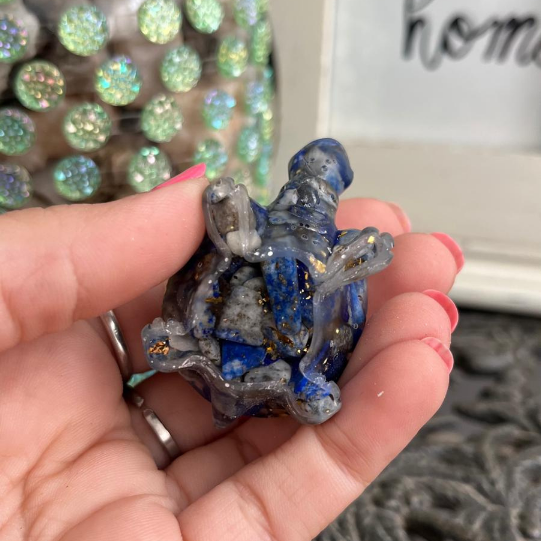 La Tortuga Sabiduría es tu aliada para conocimiento y sabiduría ancestral. Te ayuda a mejorar concentración, absorber conocimiento y desarrollar intuición, cuando necesitas claridad mental y comprensión profunda. Gracias al lapislázuli con dorado despierta la inteligencia, aporta sabiduría y abundancia. Su energía de tortuga sabia combina conocimiento con prosperidad. Colócala en tu escritorio, biblioteca, área de estudio o espacio de trabajo.