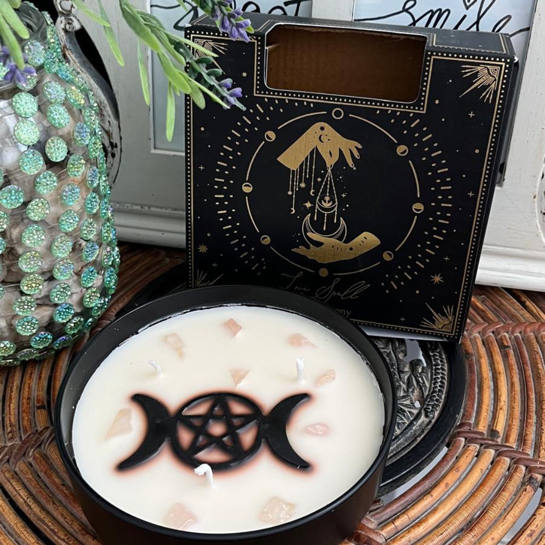 El Velón Triple Luna Rosa y Peonia con Cuarzo Rosa te ayuda a atraer amor y sanar el corazón cuando necesitas amor verdadero y sanación emocional. Enciéndelo cuando busques encontrar pareja, mejorar relaciones, sanar heridas del corazón o aumentar amor propio. Su fragancia de rosa y peonía magnetiza el amor y la ternura, mientras el cuarzo rosa sana emociones y abre el corazón y el símbolo de triple luna potencia tu poder femenino amoroso.